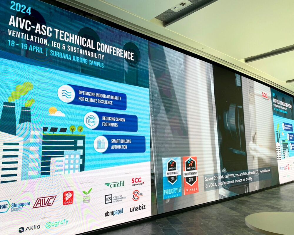 On April 18-19, 2024, SCG International and SCG Cement-Building Materials, led by Mr. Wachirachai Koonamwattana (Head of Smart System Solution Business) and Dr. Pornput Jarumongkonsak (Managing Director – Business Expansion and Development ,SCG Smart Building Solution) sponsored and introduced the SCG Air Scrubber at the AIVC-ACS event “Ventilation, IEQ & Sustainability.” In this event, professionals from the air and ventilation systems industry worldwide participated, including our target groups such as contractors, consultants, and building owners. Especially, we were honored to have Mr. Brandon Harwick, President of Engenium Group, Washington DC, USA, as a main speaker at the event.