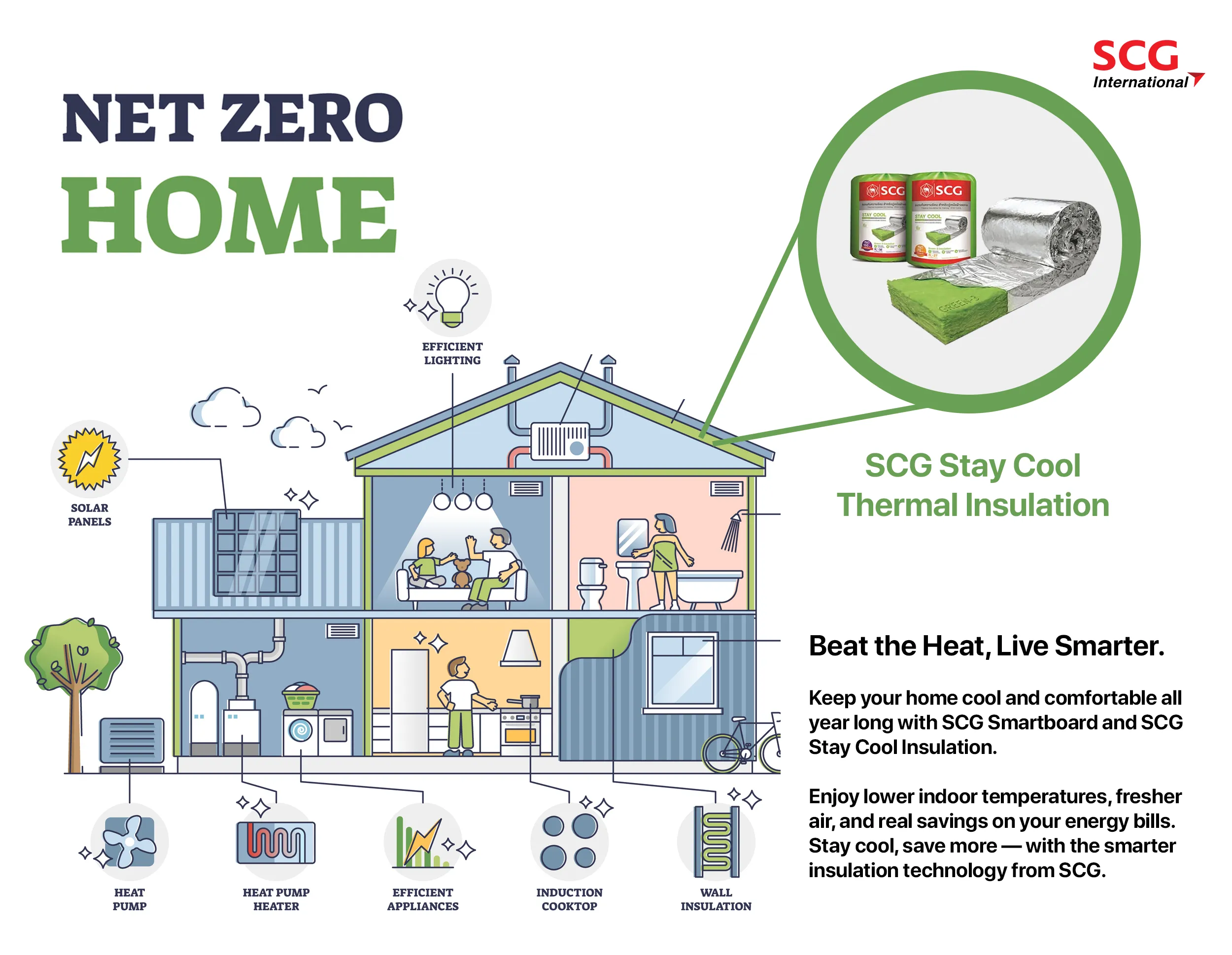 Keep your home cool and comfortable all year long with SCG Stay Cool Thermal Insulation. The advanced aluminum foil layer reflects heat away before it enters your living space. Enjoy lower indoor temperatures, fresher air, and real savings on your energy bills.