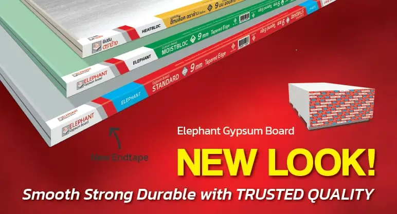 Great spaces begin with the strong and smooth walls and ceilings. SCG supplies a range of lightweight and cost effective Gypsum Board (under Elephant Brand) to help you create, design and build. Our Elephant Gypsum Board is made in Thailand. Our full range of Gypsum Boards are perfect fit to your application needs and its performance is unrivaled. We supply full range of gypsum products e.g. Drywall gypsum board, Gypsum ceiling, Gypsum wallboard, Gypsum wall panels.