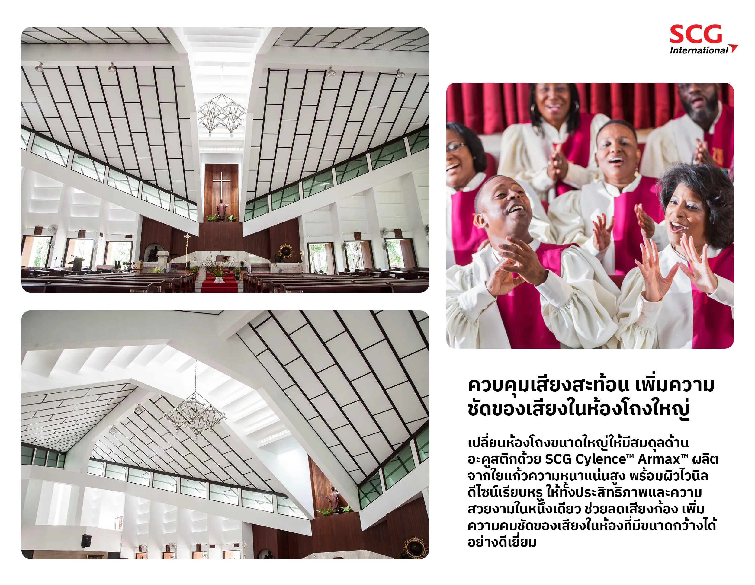 แผ่นฝ้าดูดซับเสียง SCG รุ่น Cylence Armax มอบสมรรถนะด้านอะคูสติกและการป้องกันความร้อนจากภายนอกได้อย่างดีเยี่ยม ด้วยแผ่นใยแก้วที่ออกแบบทางวิศวกรรมอย่างแม่นยำจากเอสซีจี เสริมด้วยผิวไวนิลเรียบหรูและรูปทรงที่คมชัด กลมกลืนกับงานสถาปัตยกรรมสมัยใหม่ได้อย่างลงตัว แข็งแรงทนทาน ใช้งานได้ยาวนาน คงรูปทรงไม่แอ่นตัว ไม่ลดทอนคุณภาพในทุกมิติ